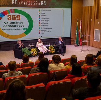 O desembargador Leoberto Brancher e a Sandra Ganzer (que atua no MPT-SC) falaram ainda sobre o "Mutirão Restaurar RS", e sobre a experiência da aplicação da JR diante da catástrofe climática que assolou o RS em abril e maio.